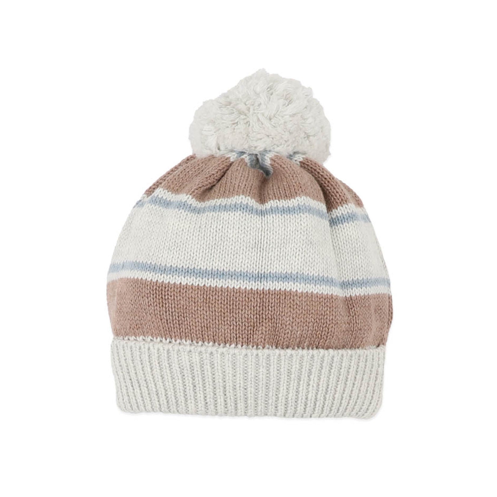 A cosy finishing touch for chilly days, this knitted beanie is designed to keep little heads warm while adding a soft, nostalgic feel to winter outfits. Featuring gentle stripes and a fluffy pom pom on top, it’s a playful yet timeless accessory perfect for pram walks, crisp mornings, and snuggly outdoor adventures.