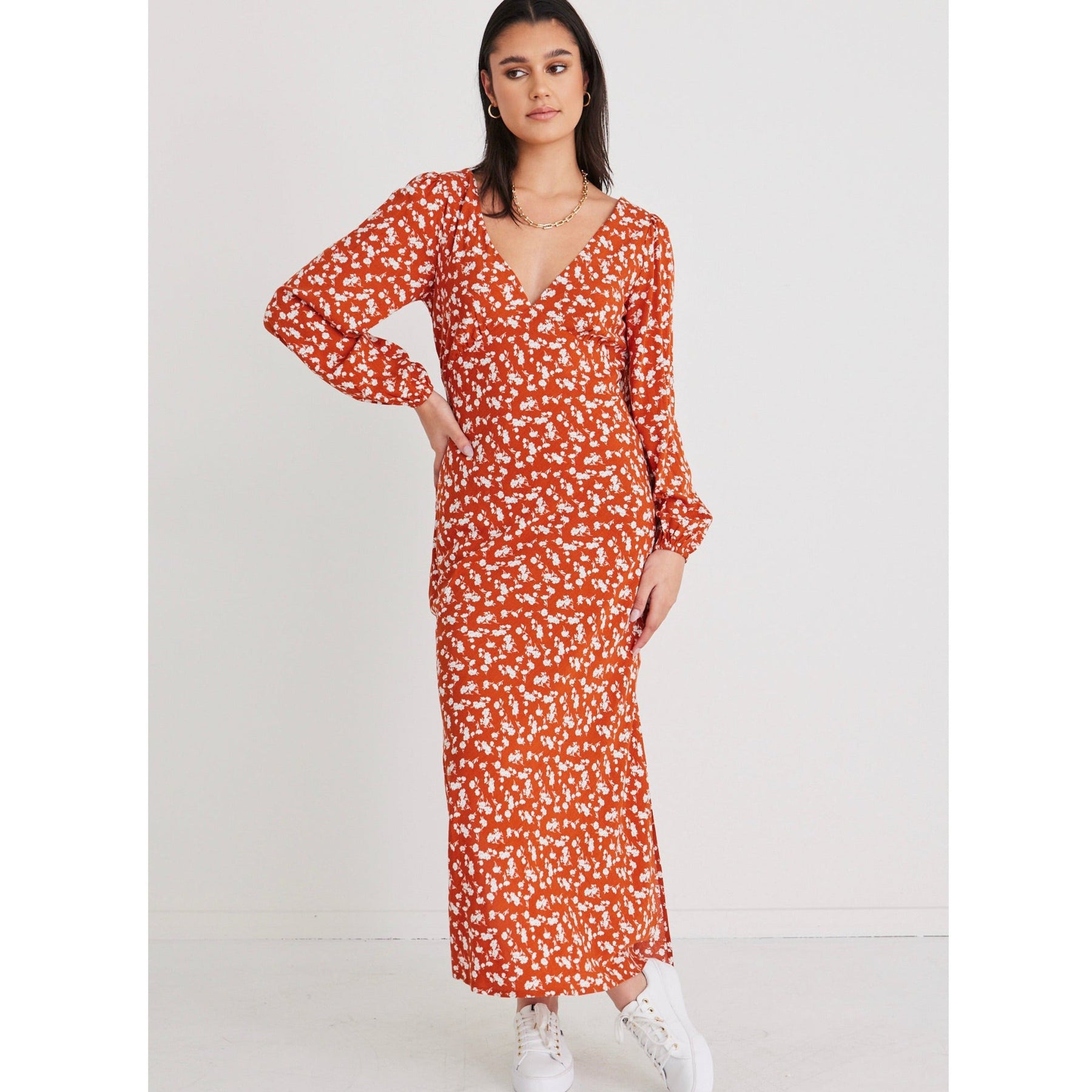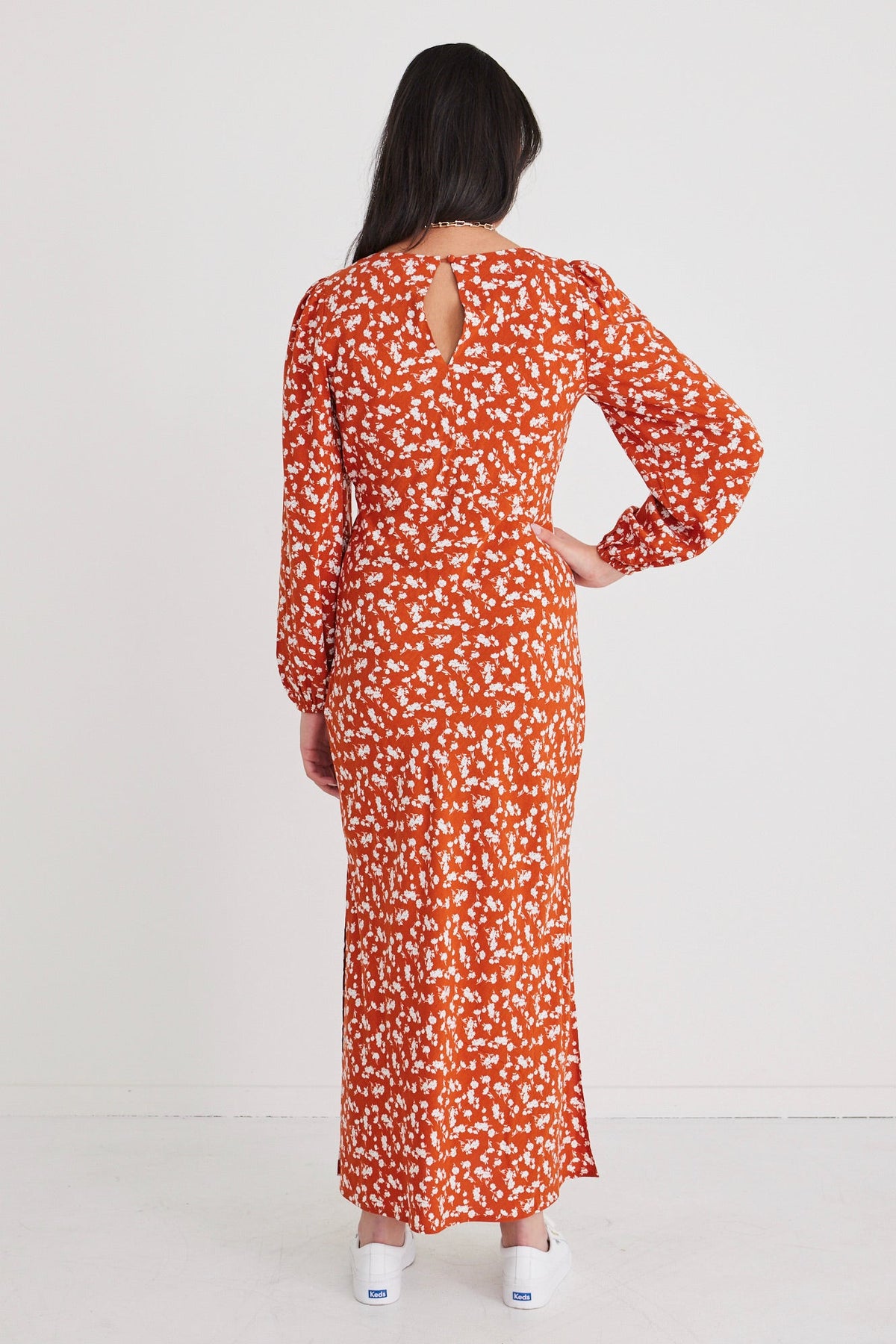 Phoenix Copper Ditsy Ls Bias Midi Dress / Red