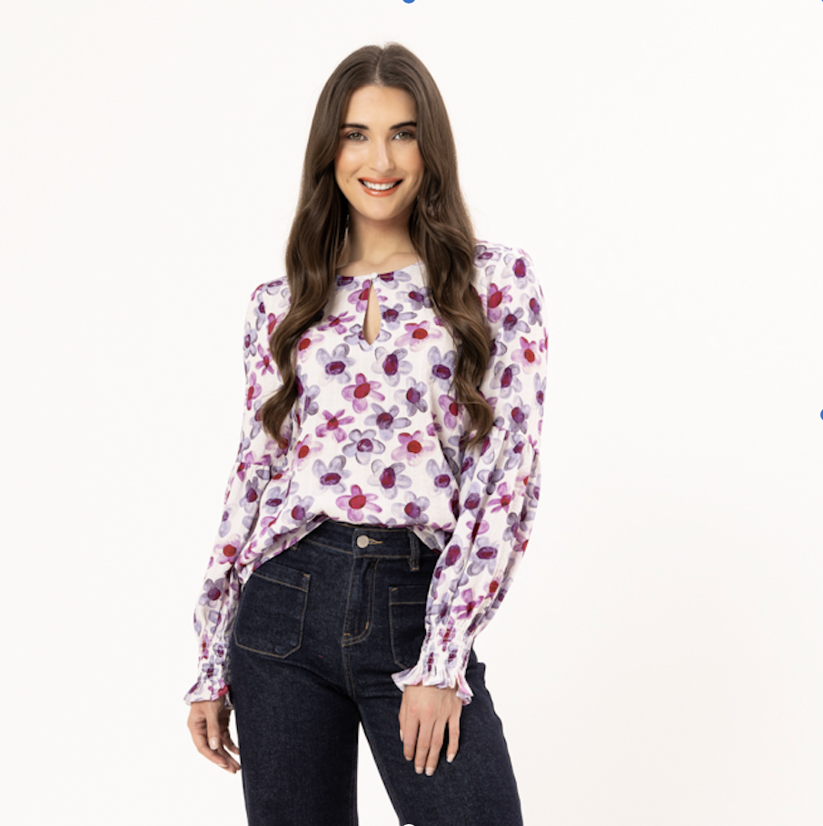 The watercolour floral print adds a fresh pop of colour without feeling too bold, making it easy to pair back with denim or more tailored pieces. It’s one of those tops that does the work for you — just add your usual bottoms and you’re good to go.