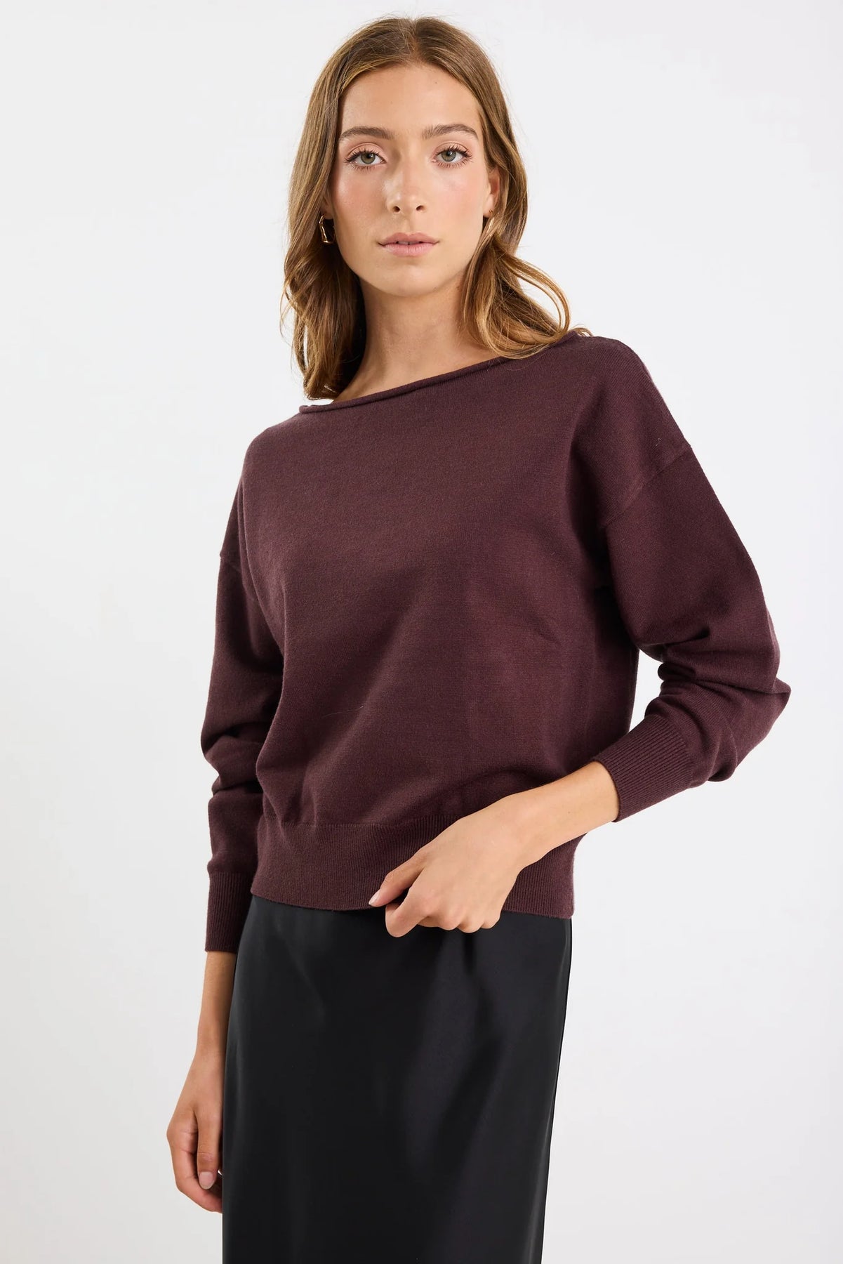 Designed in a soft knit, it has a relaxed fit that drapes comfortably through the body while still feeling elevated. The wide boat neckline creates a flattering, feminine shape that adds a little something extra without being over the top.