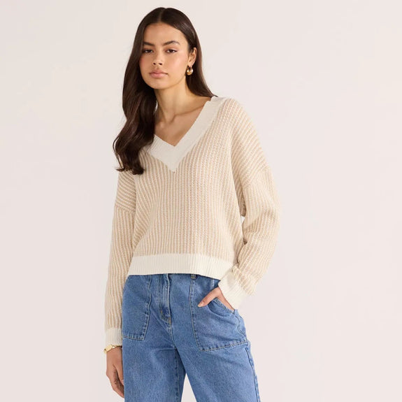 Megan V-Neck Sweater - Beige