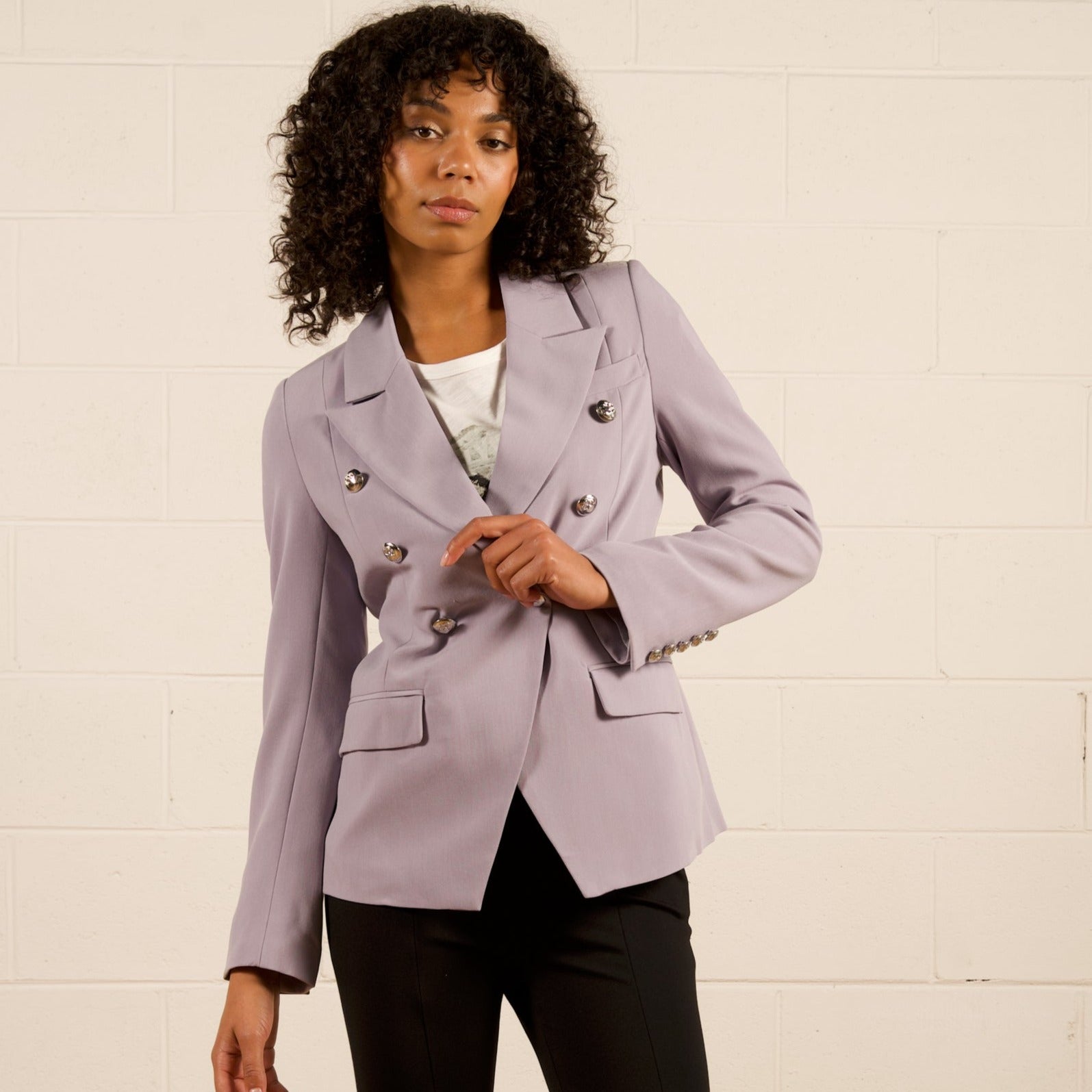 Our core double breasted blazer in an almost neutral wisteria purple. Pair with our Coco Ponte pant or dress it down with some denim jeans and white sneakers!